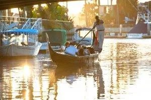 Approx. one mile of canals in Naples include a large semi-circular Rivo Alto Canal and a shorter, straight Naples Canal. Lining the canals are docks and walkways fronting homes that overlook the waterways. In the evening you can see residents of the quaint community sit on their decks and patios, watching the sunset, and waving to the gondolas and romantic couples passing by. It actually retains a flavor that could be Italian in many ways, though the weather is clearly Southern California beautiful.