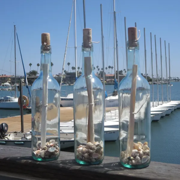 Simple as this….. you send us the message you would like to share with your guest. We will print it up on a special parchment paper, roll it up and insert it into a custom corked bottle sprinkled with a layer of seashells inside. Your Gondolier will guide you to the discretely placed floating bottle where your guest will be able to reach over and gently retrieve it. To their astonishment they will find a “message in the bottle” written to them. It will be a moment remembered forever more!